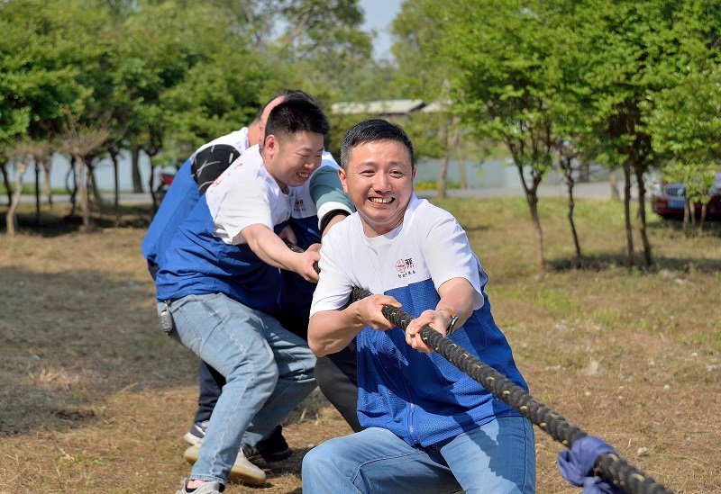 整場活動的最高潮部分當屬是拔河比賽了,我們進行了少兒組拔河友誼賽,巾幗組拔河友誼賽,男子組拔河友誼賽。賽場上,雙方選手卯足力氣,一次次的極限拉扯,一次次的頑強堅持,麻繩中間的紅絲帶不斷的左右移動,選手們各各漲紅了臉……心往一處想,勁往一處使,一根繩,一條心,迸發出的是身體中無限的潛力,拉近的是你我之間心與心的距離。一根粗麻繩 一根紅絲帶 系住的是頑強拼搏的精神 擰住的是伙伴間的信任。